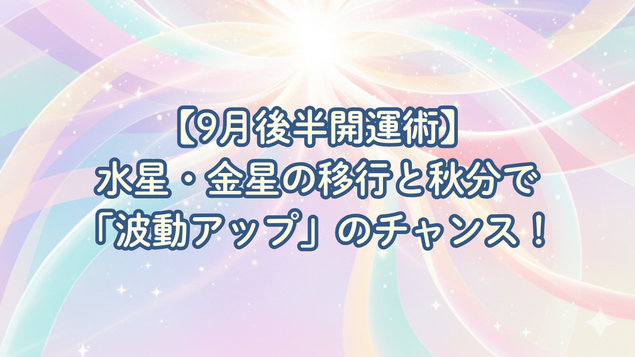 今回は、9月後半のエネルギーを最大限に活かし、あなたの波動をアップさせるためのアクションをご紹介します。